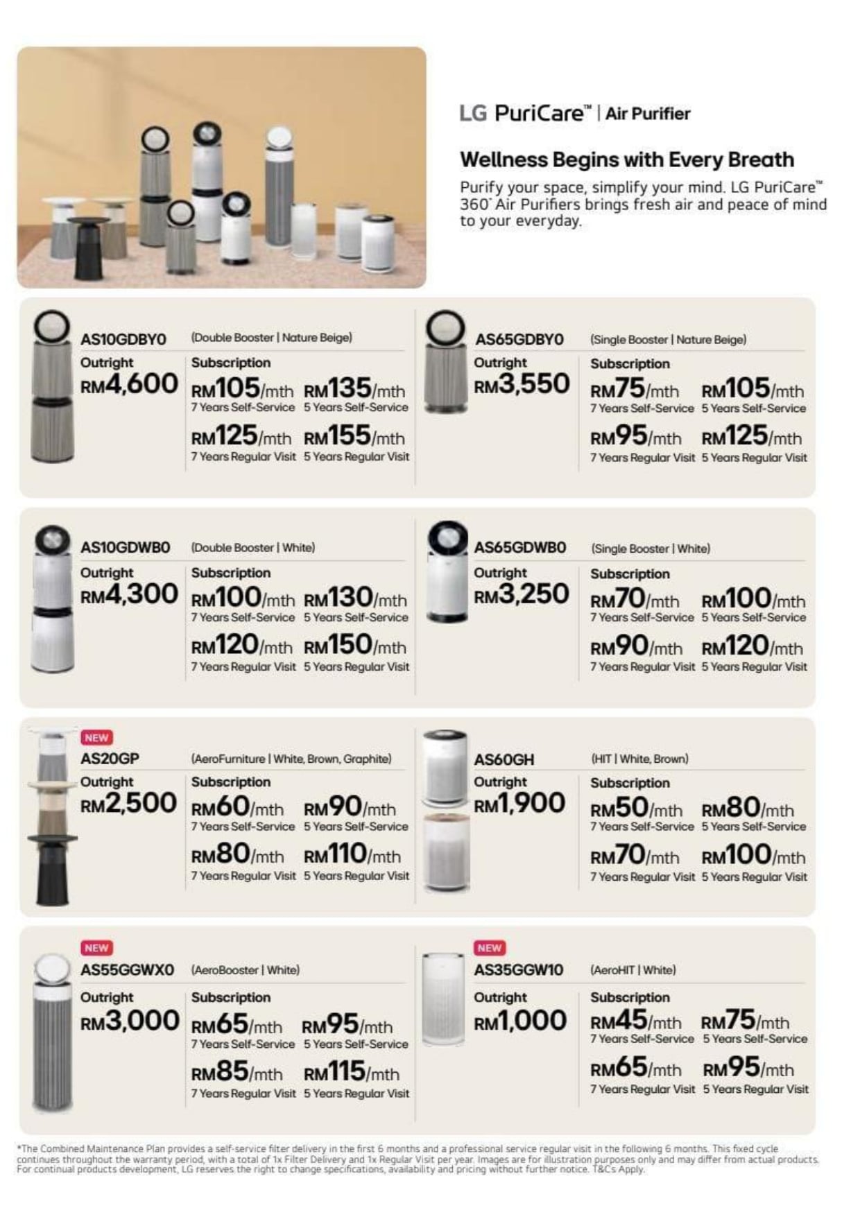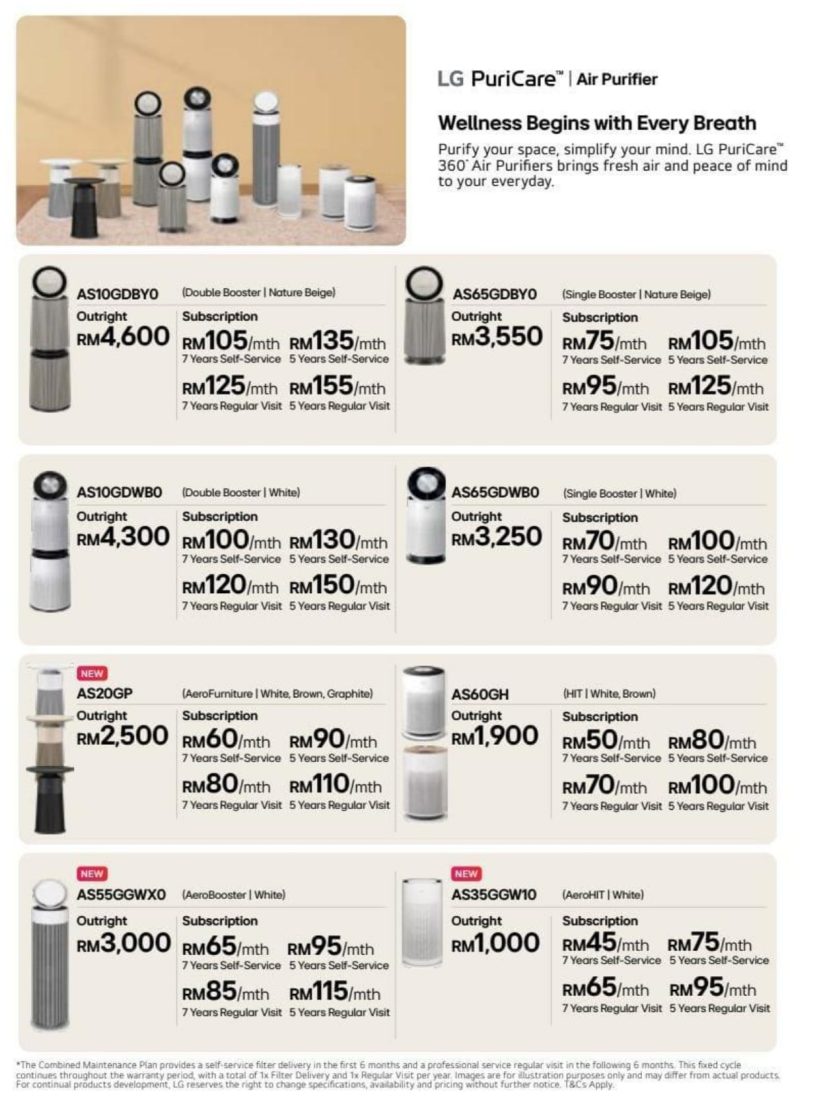 LG Subscribe is a household appliance with rent-to-own program that allows you to complete your home in a cost-effective way. LG Rent-Up home appliances monthly rental plan starting from only RM35/month. A wide range of appliances from refrigerators, air conditioner, water & air purifier to TVs are available to rent, making your place truly feel like a home.