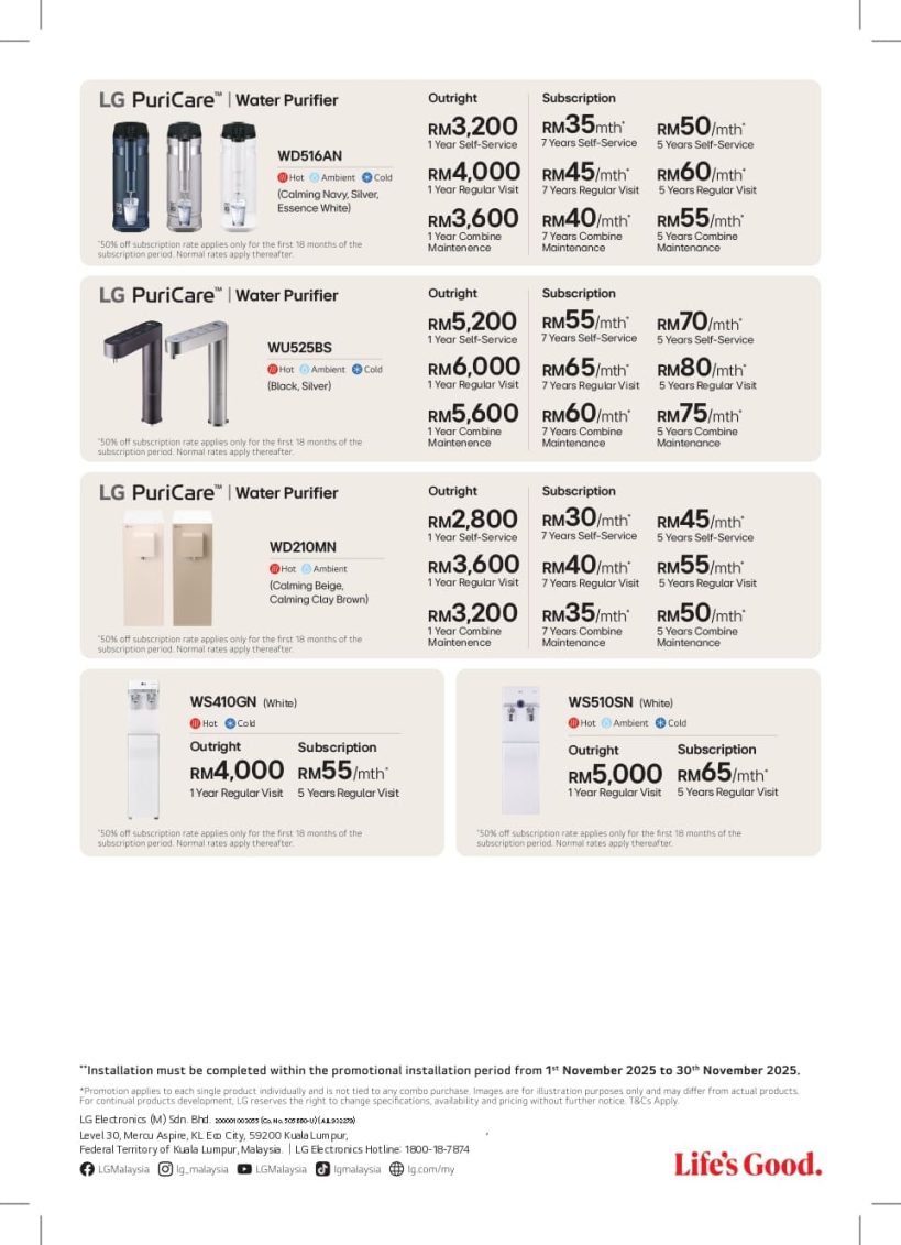 Most varieties of home appliances in Malaysia, LG Rent-up perfect for your home or office daily usage with ease, starting monthly rental from RM35 (Limited time only), you can own a brand new LG electricals today!